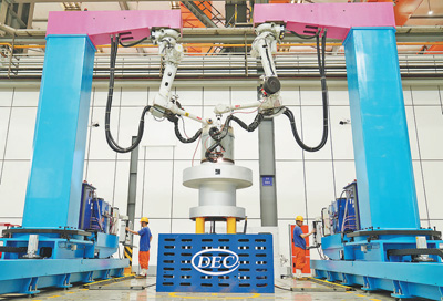 2022年叶片加工“黑灯产线”建成,叶片质量合格率达99%,人均效率提升650%;在焊接数字化车间,依托智能机器人,一次焊接合格率接近100%。
