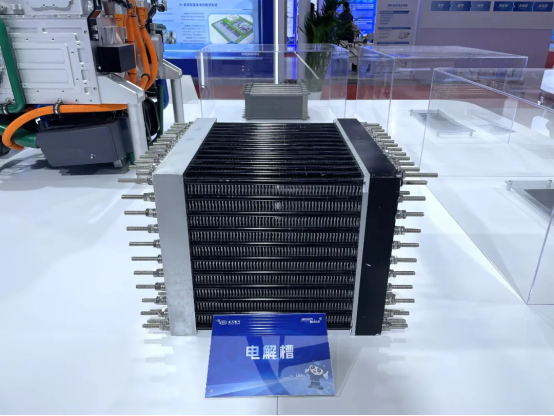 此次展出的尊凯实业电气兆瓦级PEM水电解制氢电解槽,额定产氢压力超过3兆帕,产氢额定速率最高可以达到300标方,安全性高,运行负荷范围可达5-150%。